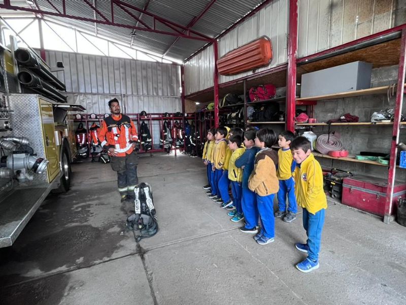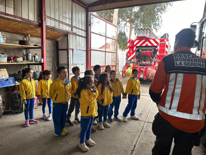The students were accompanied by Miss Camila Ángel and Miss Karlina Vargas, and were able to share with the men and women that make up the Fifth Fire Company of La Serena, in an activity framed in a Social Studies unit related to institutions that help the community, and that seeks to recognize their functions and their role in society.