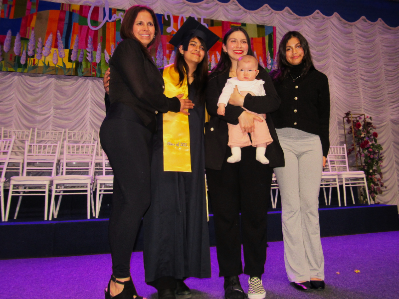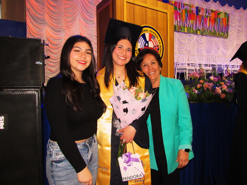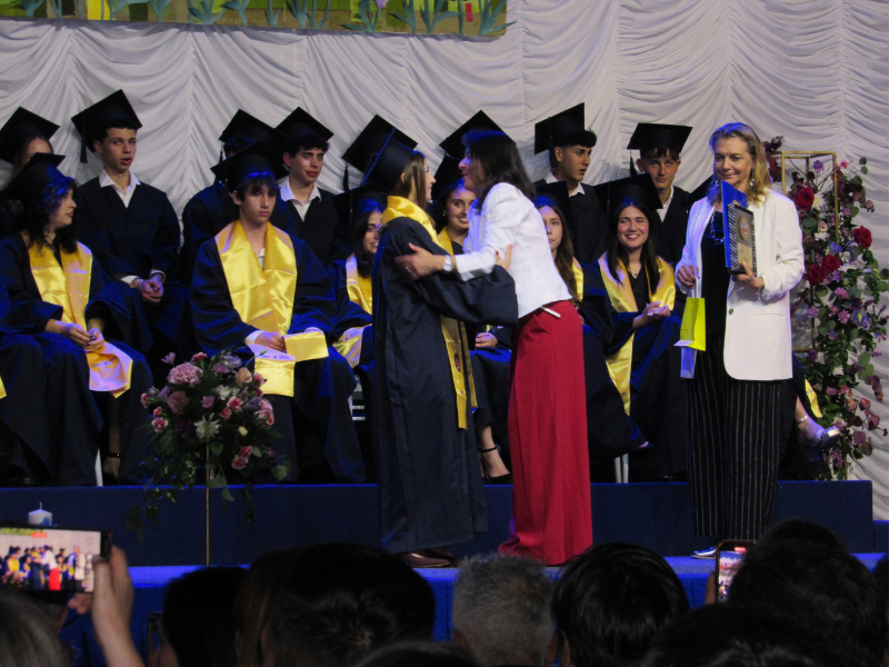 Miss Nevenka y Miss Paola estuvieron acompañadas por los estudiantes de Lower School, Olivia Huerta Aros, de Kinder P, y Nicolás Acuña Damke, de Kinder CP, junto a toda la Generación 2025 sobre el escenario.
