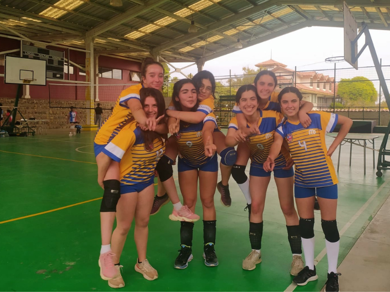Our students from the Volleyball Academy achieved a meritorious First place in the sports championship organized by Colegio San Joaquín, that took place last week. The group, conformed by our High School students, received the recognition of their teacher, their relatives and our headmistress, Miss Verónica Opazo Neumann, who urged them to continue developing in this discipline. «It is an important achievement for each one as an athlete, but above all, for the team as a whole. Congratulations to all «, she said.
