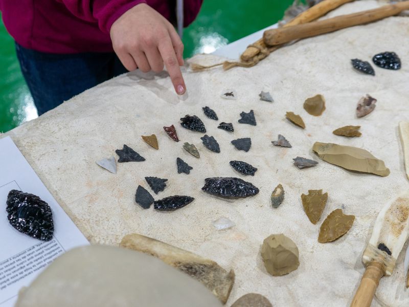 De este modo, nuestros estudiantes exploraron réplicas de cráneos, herramientas líticas, maderas, y otros objetos de la época. Además, tuvieron la oportunidad de poner en práctica algunas de las actividades que los primeros seres humanos realizaban en su vida diaria, como el uso del fuego, las técnicas de caza, además de experimentar el arte rupestre, pintando sus manos en una representación simbólica, y se familiarizaron con el lanzamiento de flechas y lanzas, especialmente adaptadas para su uso.