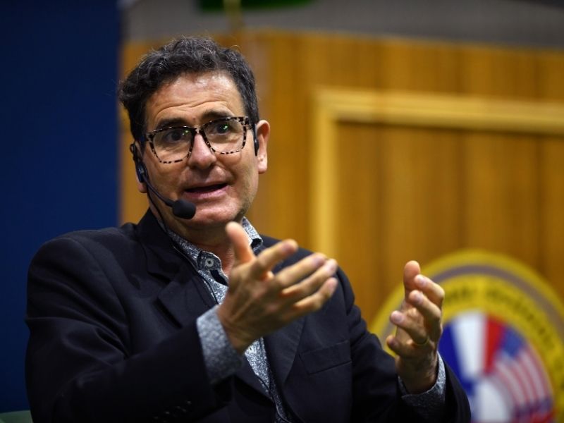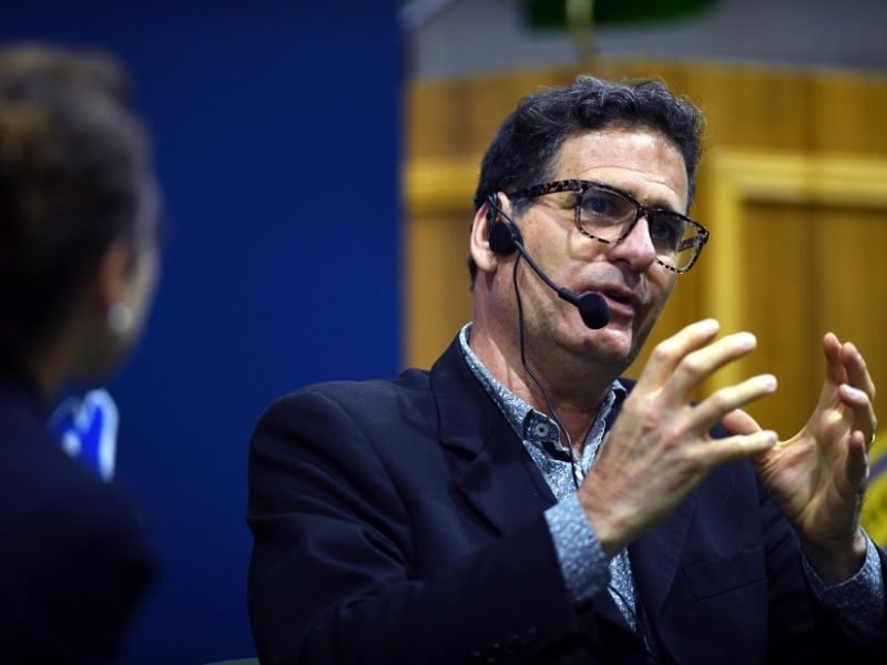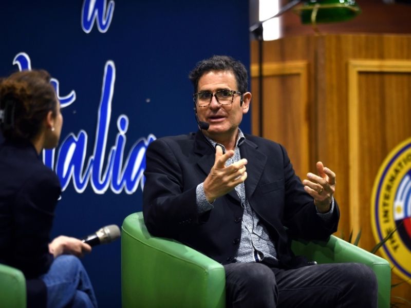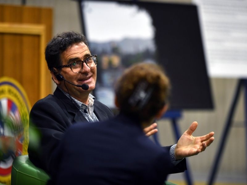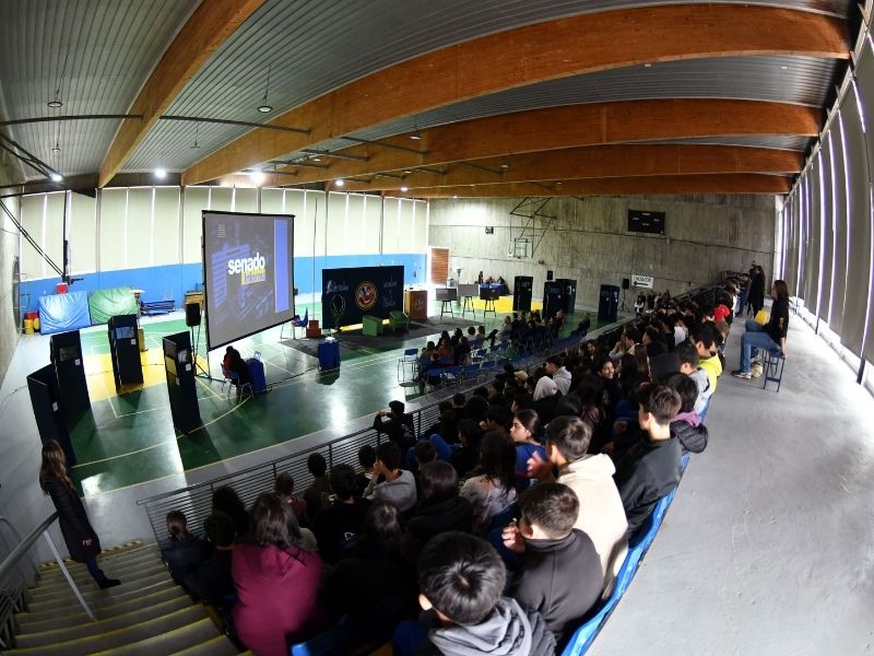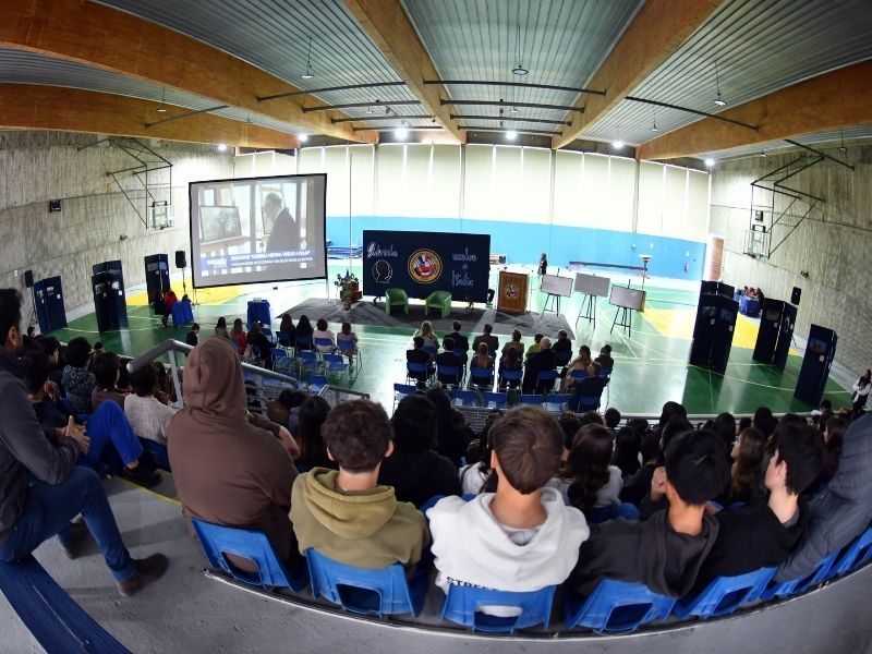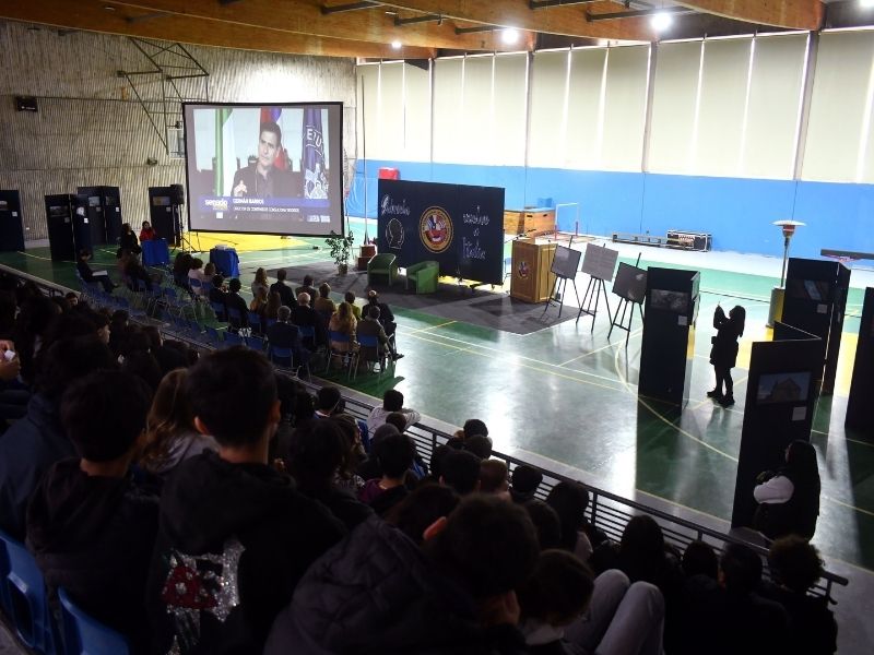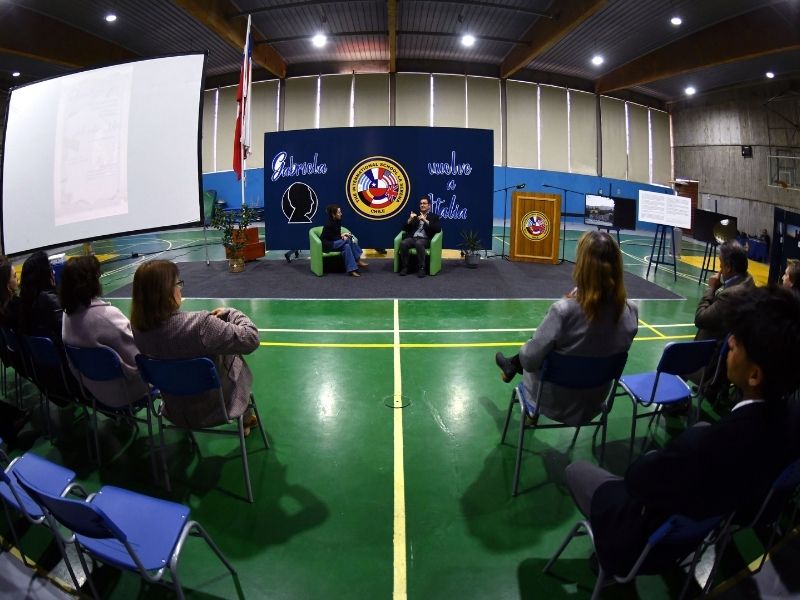 Durante la ceremonia inaugural, realizada el pasado 30 de septiembre, los estudiantes de 8º básico a 4º medio tuvieron la oportunidad de participar en un diálogo cercano entre Germán Barros y Miss Jacqueline Torrealba Díaz, jefa del Departamento de Lenguaje, Comunicación y Filosofía.