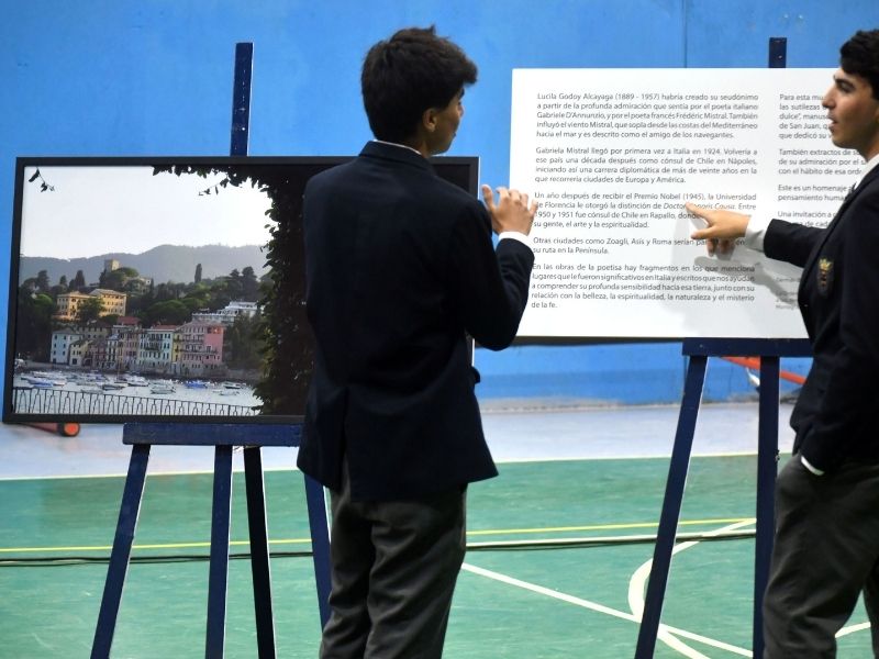 Hasta mañana martes 7 de octubre estará abierta a público en el gimnasio de nuestro colegio la exposición fotográfica “Gabriela vuelve a Italia”, del fotógrafo y gestor cultural Germán Barros Aylwin, que invita a recorrer, a través de imágenes y textos, el profundo vínculo entre la poetisa chilena Gabriela Mistral y ese país europeo.