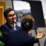 En el conversatorio, Barros explicó que “este trabajo nace a partir de una obra de teatro que realizamos con una compañía italiana en Roma. Gabriela Mistral vivió dos veces en Italia, antes y después de recibir el Premio Nobel. Viajé a cinco ciudades italianas con textos de ella, leía sus palabras en esos lugares y luego capturaba las imágenes inspiradas directamente en su obra. Es una exposición hecha junto a Gabriela, porque es ella quien guía este trabajo”.
