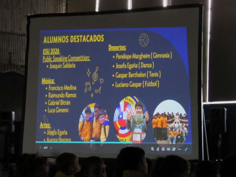 Durante la actividad, además, se destacó a estudiantes sobresalientes en distintas áreas como arte, música, deportes y oratoria, relevando así el talento y compromiso en TISLS. En Artes fueron destacadas Josefa Egaña y Aurora Herrera; en presentaciones musicales, Francisco Medina, Raimundo Ramos, Gabriel Bitrán y Lucas Gimeno. En el ámbito deportivo y extra programático, se reconoció a Mía Sánchez, clasificada al campeonato nacional de patinaje artístico; Felipe Muñoz, ganador del torneo de tenis de verano; junto a Penélope Margheim (gimnasia), Josefa Egaña (danza), Gaspar Berthelon (tenis) y Luciano Gaspar (fútbol). En oratoria se destacó a Joaquín Saldaña, ganador nacional de la Public Speaking Competition ESU 2026, quién será el encargado de representar a TISLS y a Chile en el mundial en Londres a mediados de año.