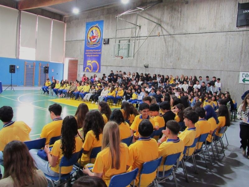 “Le doy un saludo grande a toda nuestra comunidad y quiero invitarlos a celebrar junto a nosotros este año que es muy especial, ya que cumplimos 50 años como colegio. Al igual que el de una persona, es un momento de descanso en términos de ya haber creado una identidad, de haber tejido muchos vínculos y dejado huellas que después las llevarán otros. Así es que durante todo este año vamos a conmemorar este gran proyecto educativo que tiene un tremendo desafío hacia adelante, que es ir acorde con los cambios que están sucediendo rápidamente y seguir formando, como corresponde y como lo hemos hecho siempre, a todos nuestros alumnos”, expresó.