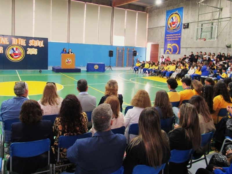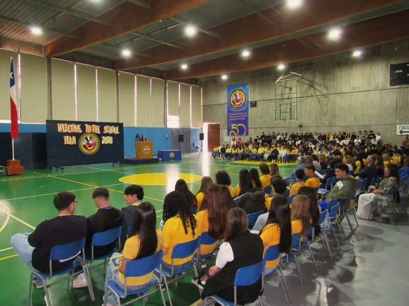 La presidenta del Centro de Alumnos, Belén Araos, también dedicó palabras a la comunidad, señalando que “este inicio de año 2026, me gustaría desearles a todos que logren lo que se propongan y que disfruten mucho, porque el colegio es una instancia para compartir, para pasarlo bien aprendiendo y hacer amigos. Además, el colegio cumple 50 años, que es una fecha memorable. A mis compañeros de ambos Cuartos Medios, decirles que disfruten cada día, ya que es una etapa que van a extrañar”.